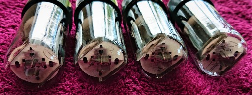 Doskonale dopasowane elektrycznie ( a nie pudełkami lub jakością napisów ;-) ! - 4 sztuki jako komplet = kwadra 6p3s = 6L6 Foton Photon z początku lat 60tych XXego wieku ze znakami wojskowej kontroli technicznej. Pochodzą z kompletu nieznacznie używanych 38 sztuk z jednego zapasu magazynowego - zdjęcie nr 7 jest zdjęciem pogladowym całego tego kompletu, a nie zdjęciem przedmiotu oferty. To sa zdjecia 1-6 ( zdjęcie pierwsze to ten komplet w akcji).