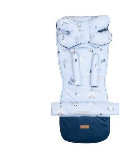 Dwustronna wkładka do wózka spacerowego wykonana z BAWEŁNY 100% w różnych wzorach i kolorach, z drugiej strony połączona z aksamitnym VELVETEM LUB MINKI alternatywa na chłodniejsze dni. W środku wypełniona mięciutkim ocieplaczem, można używać ją obustronnie.