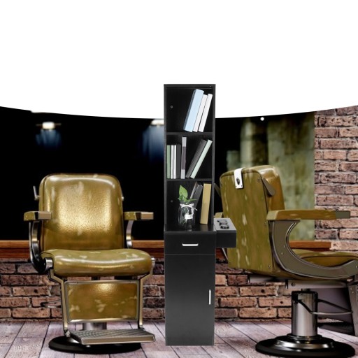 Dodatkowo boczny panel pozwoli Ci uporządkować nieład z przewodami od sprzętu fryzjerskiego, lub stanowi dodatkową przestrzeń do przechowywania suszarek.