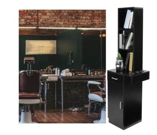 Europejski nowoczesny styl, klasyczna czarna powierzchnia, specjalnie zaprojektowana dla małych salonów fryzjerskich, salonów barber, aby w pełni wykorzystać dużą przestrzeń do osiągnięcia funkcji przechowywania, prosty wygląd, odpowiedni dla salonów fryzjerskich, salonów kosmetycznych, SPA itp.