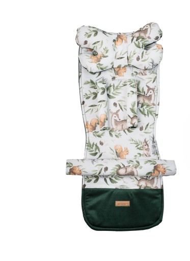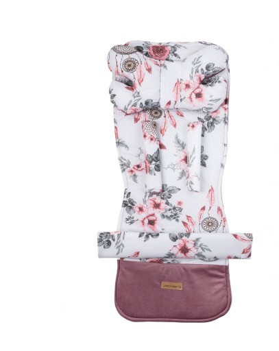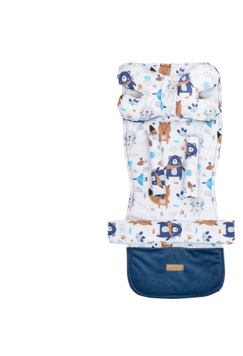 Dwustronna wkładka do wózka spacerowego wykonana z BAWEŁNY 100% w różnych wzorach i kolorach, z drugiej strony połączona z aksamitnym VELVETEM LUB MINKI alternatywa na chłodniejsze dni. W środku wypełniona mięciutkim ocieplaczem, można używać ją obustronnie.