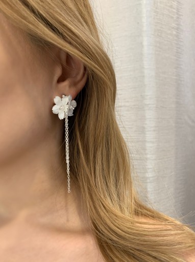 Delikatne kolczyki ślubne kwiaty. Wykonane na elementach w kolorze srebrnym.