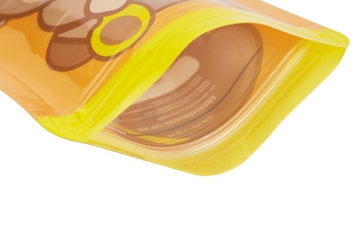 Nowe saszetki to nie tylko innowacja w postaci dolnego zamknięcia na zamek, ale także nowy miękki materiał, nowy wzór - Wesoła Małpka na pomarańczowym tle, której przezroczysty brzuszek ułatwia zobaczenie zawartości.