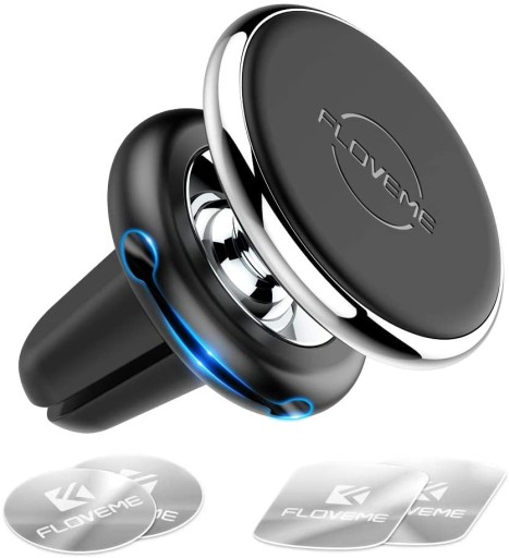 Uchwyt samochodowy FLOVEME na kabel samochodowy, magnetyczny samochodowy uchwyt samochodowy z 4 magnetycznymi metalowymi płytkami dla iPhone XS MAX / XS / XR / X / 8/7 / 6P, Samsung S9 / S8 / S7, Huawei - srebrny