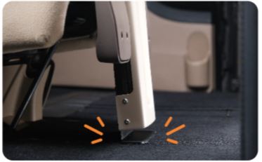 Zastosowano tu specjalny opatentowany system mocowania podnóżka do podłogi pojazdu.