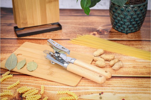 Otwieracz do puszek konserw stalowy INOX drewniany
