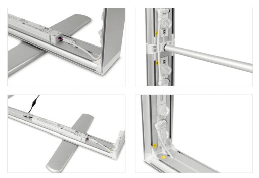 Możliwość łączenia konstrukcji LED BOX w dowolnej długości ścianki, z wykorzystaniem konektorów, bez przerw pomiędzy systemami. Konektory znajdują się w zestawie.