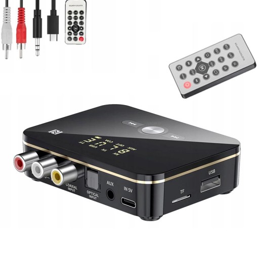 - Wbudowany chip cyfrowy do analogowego, obsługuje 3,5 mm jack AUX, Cinch, cyfrowy optyczny, koncentryczny, USB flash drive, TF interfejs.