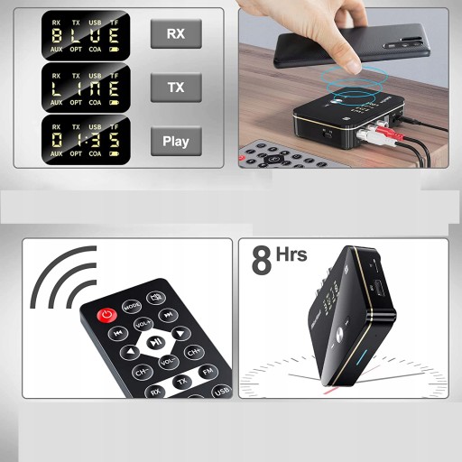 - 【Szeroka kompatybilność】: obsługuje funkcję NFC, łączy się z Bluetooth, gdy telefon jest w pobliżu (telefon musi mieć tę funkcję). Jako nadajnik audio Bluetooth może zastąpić funkcję Bluetooth telewizorów innych niż Bluetooth, komputerów PC, laptopów, tabletów itp. Ciesz się życiem, jakie zapewnia technologia bezprzewodowa. Obsługa pilota na podczerwień 5-8 m, łatwe sterowanie wieloma funkcjami