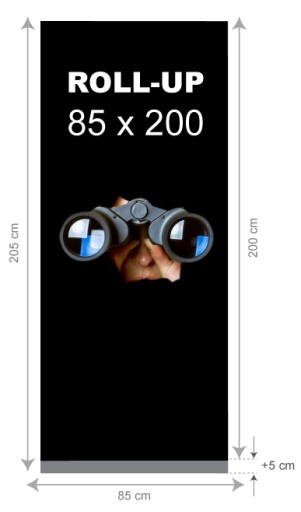 - Kolorystyka: CMYK, wymiar projektu wraz z spadem 85 x 205 cm ( 5 cm z dołu chowa się do kasety )