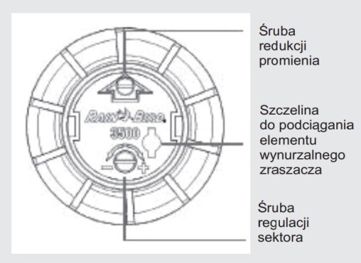 - Ustawianie sektora nawadniania od góry przy pomocy płaskiego śrubokręta.