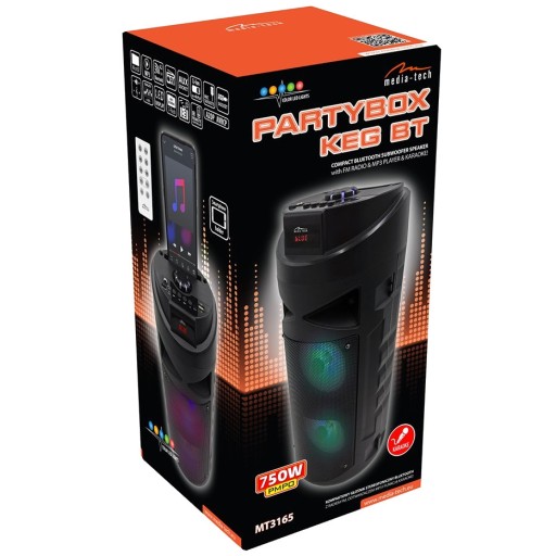 Media-Tech prezentuje najnowszy model kontynuujący serię głośników Bluetooth, PARTYBOX KEG BT MT3165 z dwoma głośnikami 4” o łącznej mocy RMS 30W, PMPO 750W.