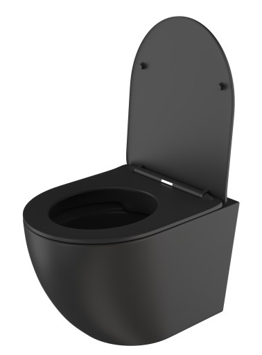 ЧЕРНЫЙ УНИТАЗ, БЕЗОБОДКИ, ПОДВЕСНОЕ СИДЕНЬЕ G-203