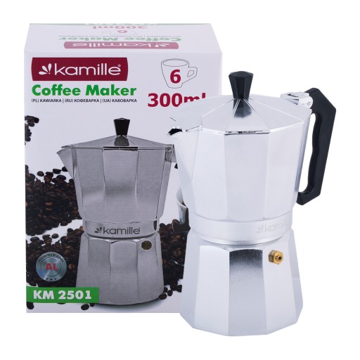 Kawiarka KAMILLE jest urządzeniem, dzięki któremu można bardzo szybko zaparzyć esencjonalne i aromatyczne espresso. Gruba warstwa aluminium zapewnia równomierne i szybkie rozprowadzenie ciepła, dzięki temu kawa będzie gotowa w 5 minut. Produkt o pojemności 300 ml.