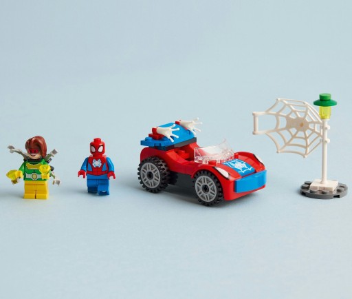 Kultowe postacie – w zestawie minifigurki Spider-Mana i Doc Ocka, a także samochód z dwoma świecącymi w ciemności sieciami i klocek startowy w formie podwozia, aby zachęcić początkujących budowniczych.
