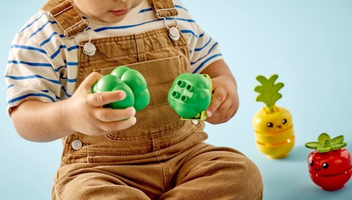 Zestaw LEGO® DUPLO® Traktor z warzywami i owocami (10982) oferuje mnóstwo ciekawych sposobów na rozwijanie wiedzy maluchów. Przedszkolaki mogą dołączyć do rolnika zbierającego owoce i warzywa traktorem z trzema przyczepami. Dzieci doskonalą swoje umiejętności motoryczne, ucząc się, jak kwitną owoce i warzywa, oraz układając klocki tak, aby rośliny „rosły”. Zestaw składa się z 19 elementów i jest przeznaczony dla dzieci powyżej 18 miesiąca życia.
