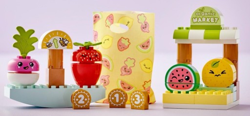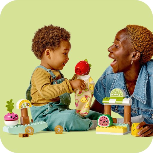 Zabawki LEGO® DUPLO® umożliwiają przedszkolakom nieograniczoną zabawę, wyrażanie siebie i radosną naukę. Ten zestaw zachęca do interaktywnej zabawy dzieci i dorosłych, którzy mogą odgrywać rolę sprzedawcy owoców i warzyw lub klienta. Zestawy LEGO® DUPLO® pozwalają rodzicom i małym dzieciom razem uczestniczyć w ważnych etapach ich rozwoju podczas wspólnego budowania i zabawy.