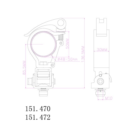 Wytrzymały zacisk do zawieszenia i przymocowania, między innymi, świateł na konstrukcję kratownicy lub rur. Zacisk jest wykonany z bardzo silnego aluminium i może przenosić masę maks. 100 kg.