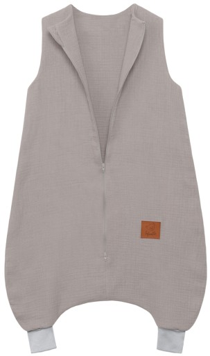 Muślin double gaze to miękka i delikatna tkanina, idealna dla wrażliwej skóry dzieci. Śpiworek wykończony jest mięciutkimi i elastycznymi ściągaczami w kolorze jasnoszarym, które idealnie dopasowują się do nóżek dziecka.