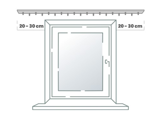 W celu dobrania odpowiedniego rozmiaru szyny sufitowej zmierz szerokość wnęki okiennej i dodaj 40-60 cm (po 20-30 cm na każdą stronę). Jeśli chcesz by szyna była zamontowana między dwiema ścianami to wystarczy zmierzyć odległość między nimi.