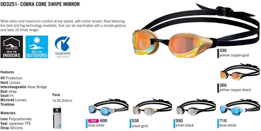 ОЧКИ ДЛЯ БАССЕЙНА ARENA COBRA CORE SWIPE MIRROR