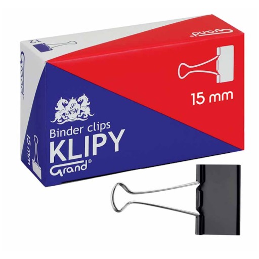 Klipy biurowe GRAND 15mm czarne - opakowanie 12szt
