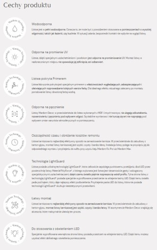 Listwę karniszową QL056 można zastosować w roli estetycznego maskowania karnisza. Pasuje zarówno do drążka jak i szyny. Listwa posiada prostą formę, która sprawdzi się do wszystkich typów mieszkań. Swoim wyglądem przypomina zabudowę kartonowo gipsową, jednak jest od niej dużo trwalsza. Listwa karniszowa została wykonana z zaawansowanego technologicznie tworzywa PolyForce, które zapewnia wysoką ochronę przed uszkodzeniami mechanicznymi. QL056 jest wodoodporna, dzięki czemu doskonale sprawdzi się w wilgotnym środowisku jak kuchnia czy łazienka. Wysokie parametry techniczne gwarantują nienaganny wygląd listwy, nawet po upływie wielu lat. Listwa karniszowa jest także odporna na promienie słoneczne dlatego możesz mieć pewność, że z czasem użytkowania nie zżółknie, zachowując swój pierwotny śnieżnobiały odcień. Przemyślany design sprawia, że listwa doskonale współgra z oświetleniem LED. Innowacyjna technologia LightGuard® zapewnia efekt idealnie rozproszonego światła. Diody nie przebijają przez materiał, a Ty nie musisz się martwić o dodatkowe obklejanie taśmy LED folią aluminiową. Listwę karniszową można bez problemu przyciąć i dopasować do długości dowolnej wnęki okiennej.