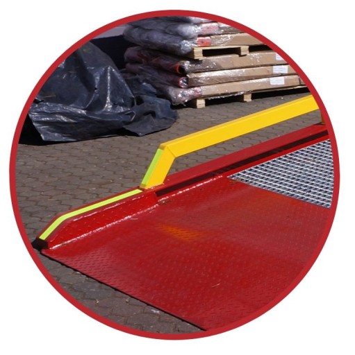 ✅ Centralny uchwyt rampy umożliwiający przestawianie rampy wózkiem widłowym