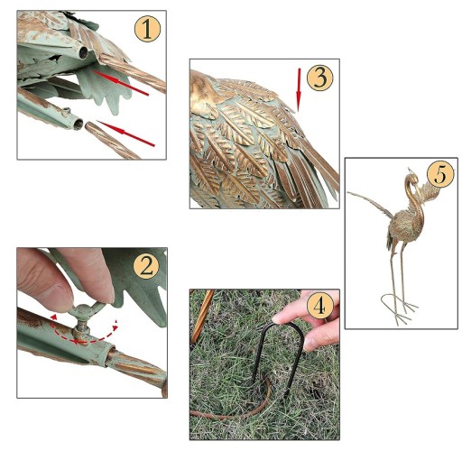 - 2 Ustaw figurę dekoracyjną ogrodu naturalnego dźwigu i jeden ze zdejmowanymi skrzydłami, wymiary około 85,1 x 61 cm i 99,1x 19 cm