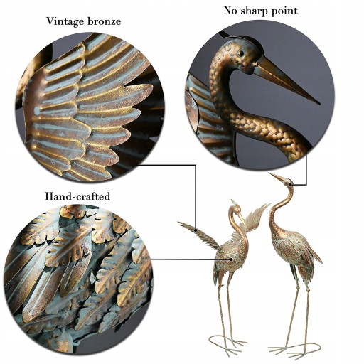 - Duża postać dźwigu wykonana z solidnego i wytrzymałego metalu w wyglądzie rdzy; Malowany metal jasnobrązowy z lekką patyną w świetnych anty -optykach, z wieloma wielkimi detalami - odpowiednie dla ładnego ogrodnictwa dźwigowego w stawie ogrodowym, idealne do dekoracji studni, basenu, stawu rybnego, stref bankowych, salonu, pokoju , Ogród, taras lub balkon itp.