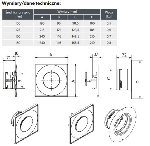Każdy anemostat posiada w komplecie ramkę montażową.