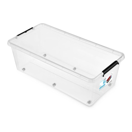 Pojemnik do przechowywania z pokrywą i klipsami SimpleStore Wheel 1822 Transparent 55L na kółkach