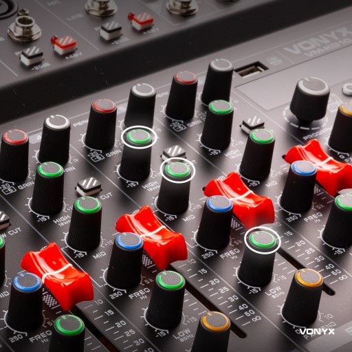 Dzięki wbudowanemu procesorowi dźwięku DSP (Digital Sound Processor) z aż 99 efektami możesz puścić wodze fantazji. Delay, echo, flanger, to tylko kilka przykładów możliwości, jakie oferuje konsola mikserska. Idealny na przykład do wokali, aby uzyskać profesjonalne brzmienie. Pierwsze 6 (mono) kanałów jest również wyposażonych w regulację wysokich, regulowanych tonów średnich i niskich / korektor w celu dostosowania dźwięku do potrzeb.