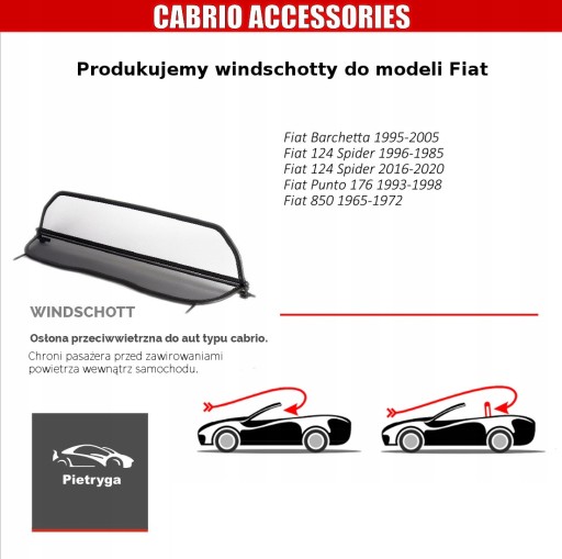 Windschott Wiatrołap Fiat 124 1966-1985 - Polski Producent - CABRIO PIETRYGA