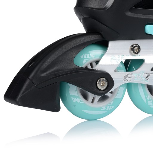 Miękkie kółka gwarantują dobrą przyczepność do podłoża oraz dobrze absorbują wszystkie drgania. Zapięcie buta za pomocą klamry dwusekcyjnej, rzepa i sznurowadeł, zapewnia maksymalne bezpieczeństwo podczas jazdy, natomiast hamulec wykonany z najwyżej jakości PP odpornego na uderzenia spowoduje bezpieczne zatrzymanie, nawet przy stosunkowo dużych prędkościach.