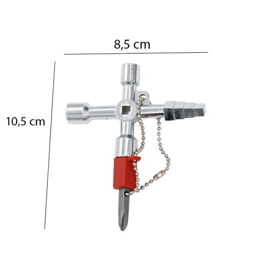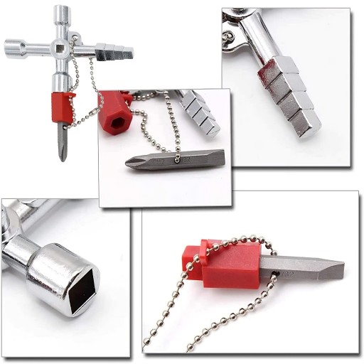 Klucz posiada wiele zalet, jedną z nich jest posiadanie aż 4 końcówki co czyni z niego uniwersalnym. Otworzy on praktycznie wszystkie szafki sterujące dostępne na rynku. Przez swój niewielki rozmiar zmieści się w każdej torbie, nie zajmując przy tym dużo miejsca. Posiadanie takiego klucza to wręcz obowiązek, nie tylko odciąży miejsce w naszej torbie ale również sprawi, że żadna szafa sterująca nie będzie już straszna.