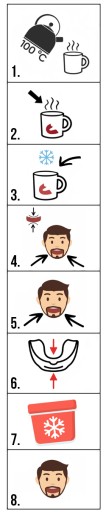 - Zwróć szczególną uwagę, na pkt.6 ściśniecie ochraniacza w przedniej części zapewnia jego utrzymywanie się na zębach.