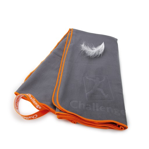 Tłoczone logo Challenge na ręczniku nadaje mu indywidualny charakter.