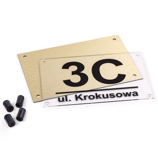 - Tabliczka wykonana jest z twardego rdzenia polietylenowego, stalowe dystansów montażowych, a także szkła akrylowego.