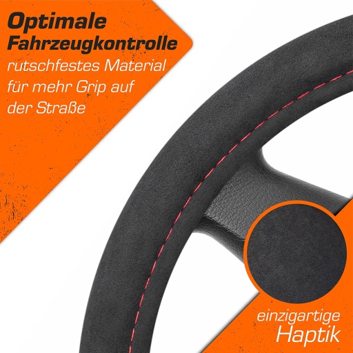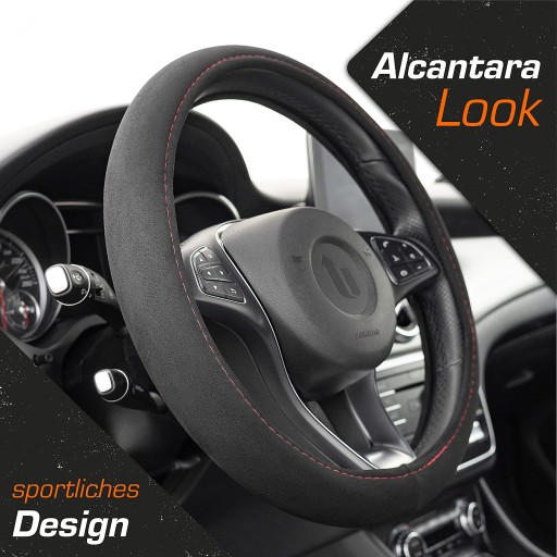 - ⭐️ 𝗢𝗽𝘁𝗶𝘀𝗰𝗵𝗲: Szlachetna okładka kierownicy z czerwonym szwem w sportowym designie.