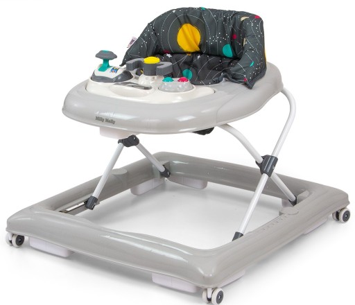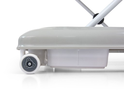 Cztery wysokiej jakości obrotowe kółka, które nie rysują powierzchni, po której się poruszają, zapewnią swobodę przemieszczania a osiem gumowych stoperów ochroni dziecko przed zjechaniem ze schodów lub innych przeszkód.