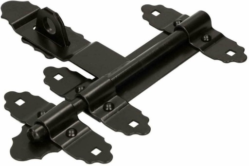 Produkt charakteryzuje się kutą stalową, solidną budową, przez co posłuży jako trwałe zabezpieczenie bramy. Element malowany proszkowo na kolor czarny, co nadaje mu uniwersalnego wyglądu, który z łatwością dopasujesz do modelu swoich drzwi.