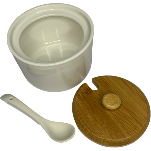 Cukierniczka porcelanowa bambusowa biała z pokrywką łyżeczką cukiernica pojemnik na cukier