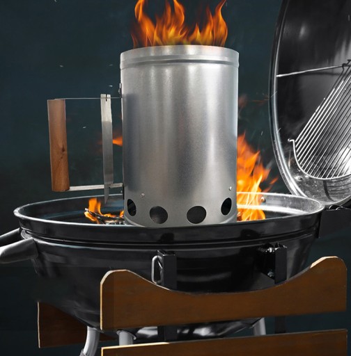 - komin do rozpalania grilla zapewnia szybkie rozżarzenie materiału