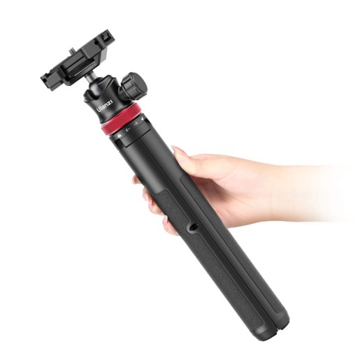Ulanzi MT-44 to teleskopowy statyw stołowy z głowicą kulową, wykonany z tworzywa ABS. Płytka na aparat z gwintem 1/4'', którą jest zakończona głowica, może zostać w kilka sekund przekształcona w zaciskowy uchwyt na smartfona. MT-44 łączy w sobie funkcjonalność tradycyjnego tripoda oraz rozsuwanego wysięgnika selfie o bardzo dużym zasięgu. Dzięki temu ze statywu mogą z powodzeniem korzystać nie tylko fotografowie, ale także vlogerzy i twórcy internetowi. Regulowany sprężynowo zacisk do telefonu oferuje zakres od 60 do 80 mm. Po przekształceniu głowicy w uchwyt na smartfona do naszej dyspozycji jest też dodatkowe mocowanie typu zimna stopka, które możemy wykorzystać podczas pracy z niewielką lampą LED czy mikrofonem zewnętrznym.