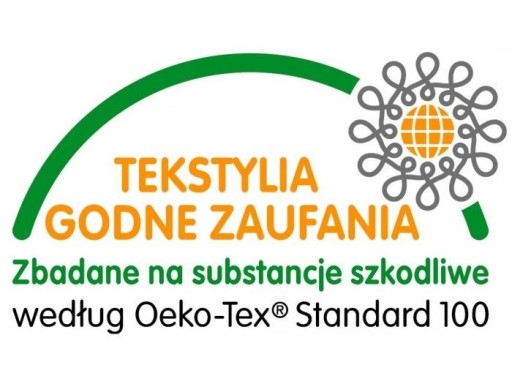 - Posiada certyfikat: OEKO-TEX -Testowany na substancje szkodliwe