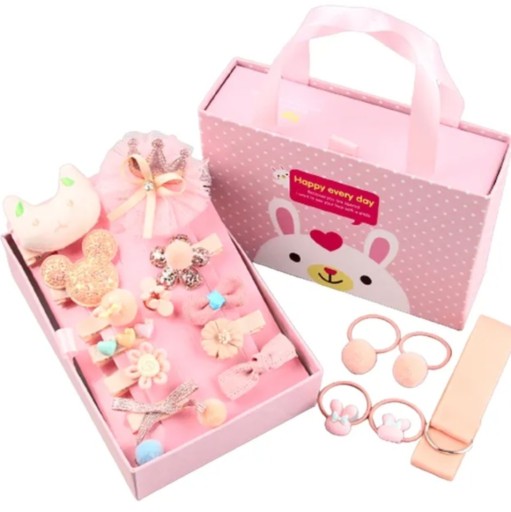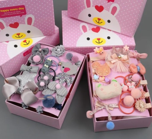 НАБОР ДЛЯ ДЕВОЧКИ, РЕЗИНКИ, ЗАЖИМЫ, УКРАШЕНИЯ, КОРОБКА