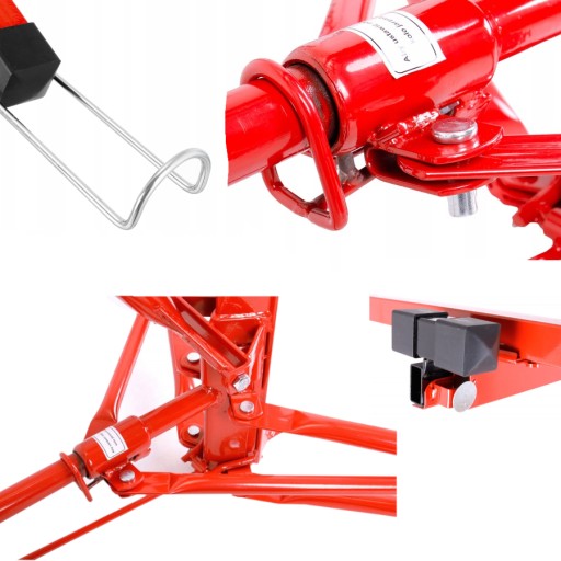 ✅ Całość urządzenia po złożeniu zajmuje bardzo mało miejsca. Podnośnik można schować w małych pomieszczeniach lub transportować w bagażniku samochodu.