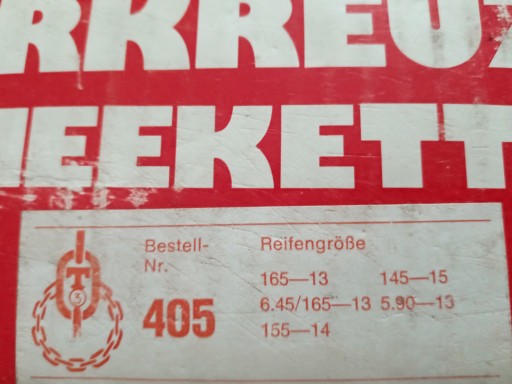 Łańcuchy nieużywane lecz przeleżałe X czasu na magazynie stąd gdzieniegdzie zaśniedziałe, podniszczone pudełko
