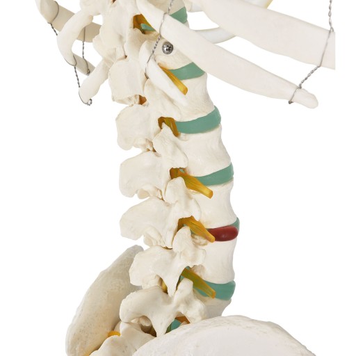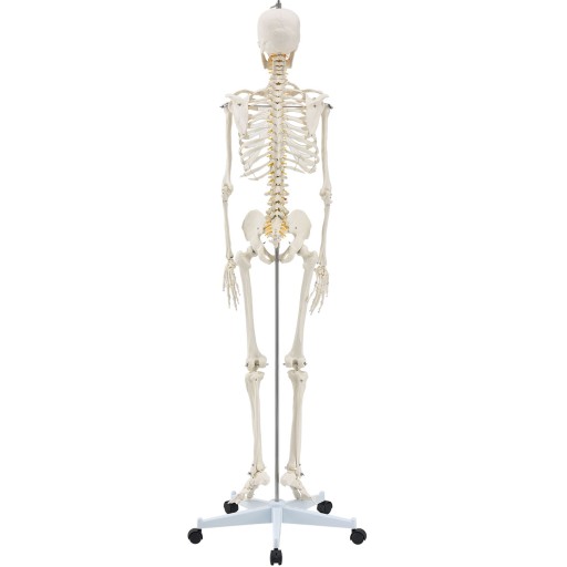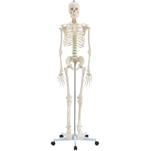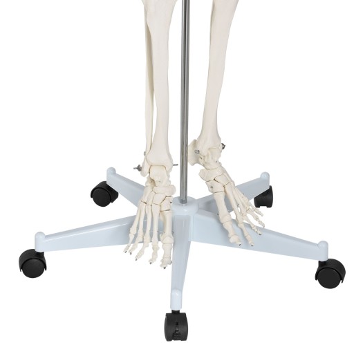 Szkielet anatomii jest wyposażony w solidny statyw z gładko pracującymi kółkami. Pozwala to z łatwością poruszać szkieletem całego ciała od A do B. Dzięki 5-stopowym krzyżom ramion szkielet może bezpiecznie stać. Oprócz zamontowanych hamulców postojowych rolek, szkielet anatomii nie toczy się tak szybko. Zawieszka umożliwia również montaż na ścianie i suficie.